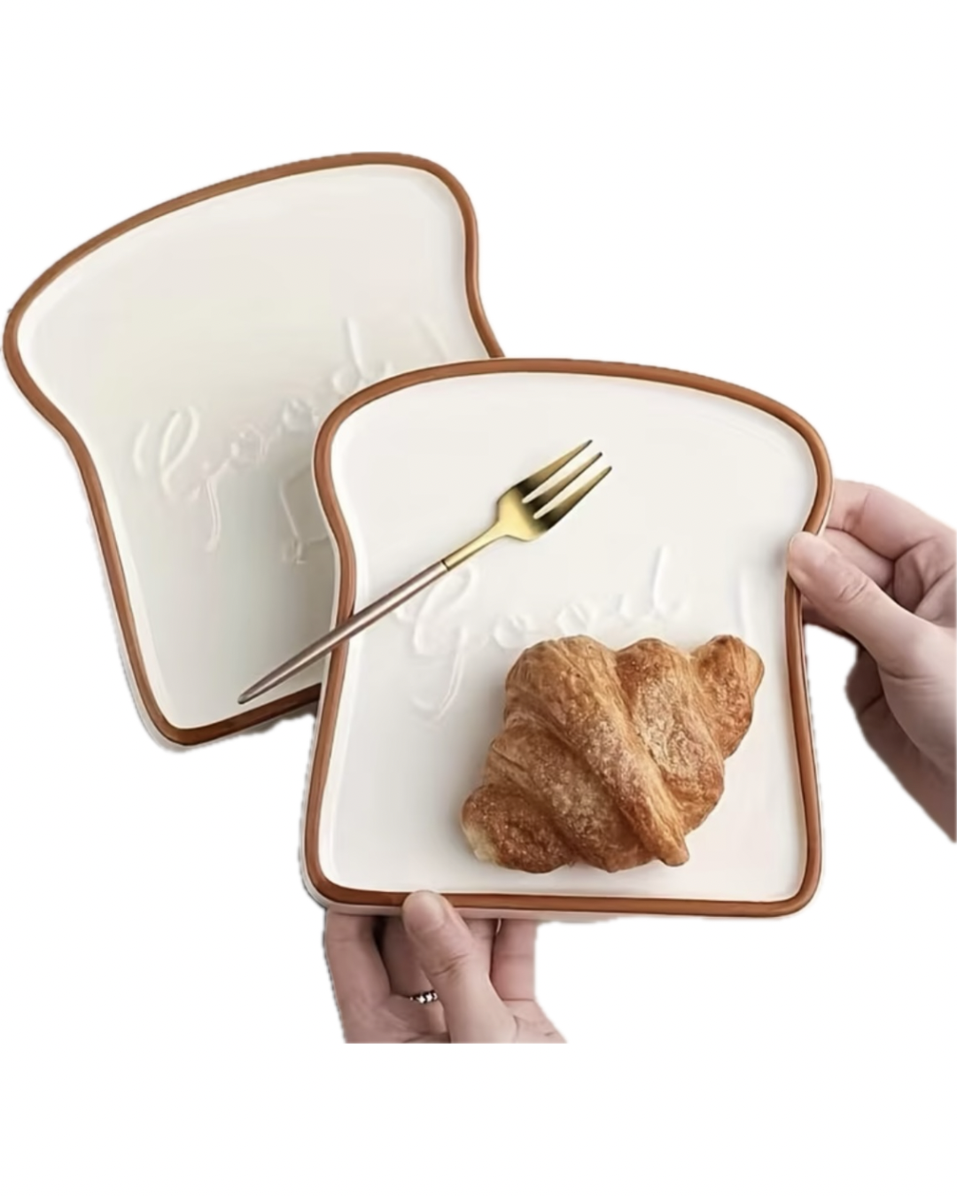 Coppia di piatti in ceramica a forma di toast, ideale per un brunch o colazione.